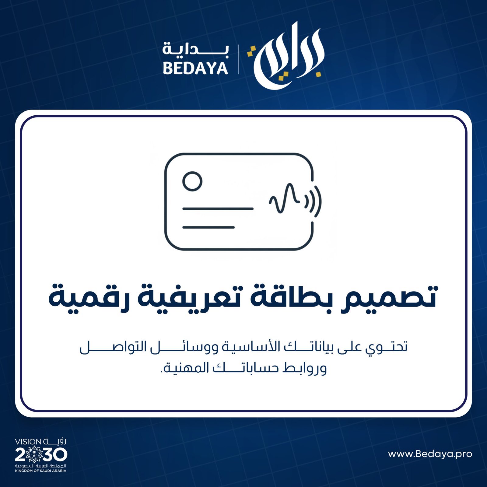 • ✔ تصميم بطاقة تعريفية رقمية (Digital Card) بشكل احترافي يعكس هويتك.