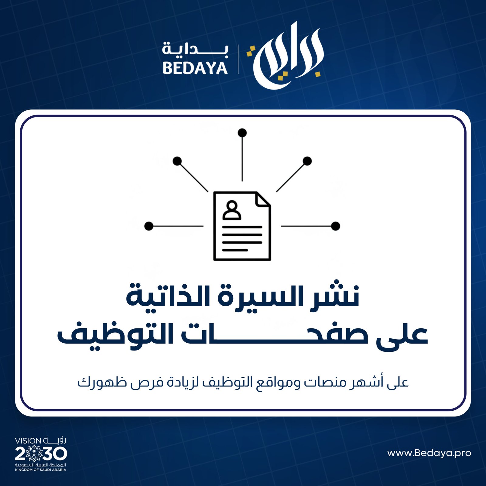 - ✔ التأكد من اكتمال البيانات المهنية وصياغتها بشكل احترافي يجذب أصحاب القرار.